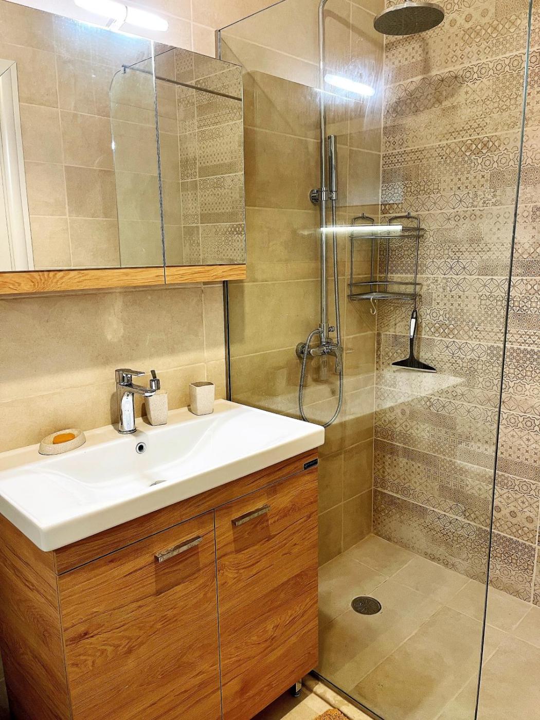 The villa has 3 bedrooms, 2 bathrooms, bed linen, towels, a TV with satellite channels, a fully equipped kitchen, and a terrace with mountain views. For added privacy, the accommodation features a private entrance.