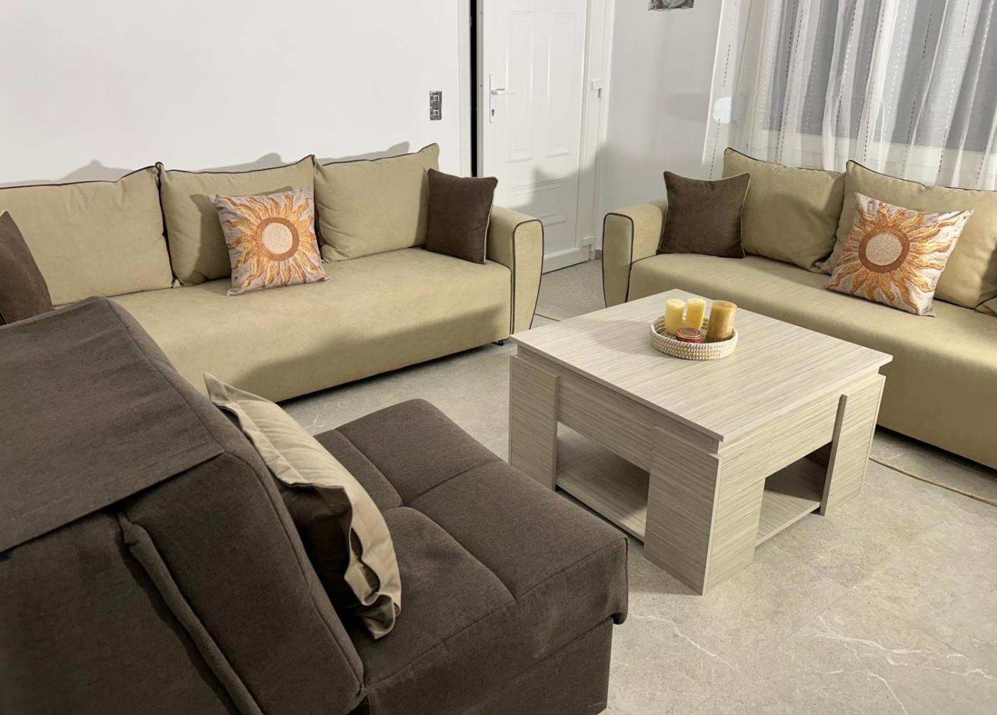 One-Bedroom Apartment. Boasting a private entrance, this air-conditioned apartment comes with 1 living room, 1 separate bedroom and 1 bathroom with a bath or a shower and a hairdryer. Guests will find a stovetop, a refrigerator, kitchenware and an oven in the fully equipped kitchen. The apartment also includes a barbecue. Featuring a terrace with sea views, this apartment also features a washing machine and a flat-screen TV. The unit has 3 beds.