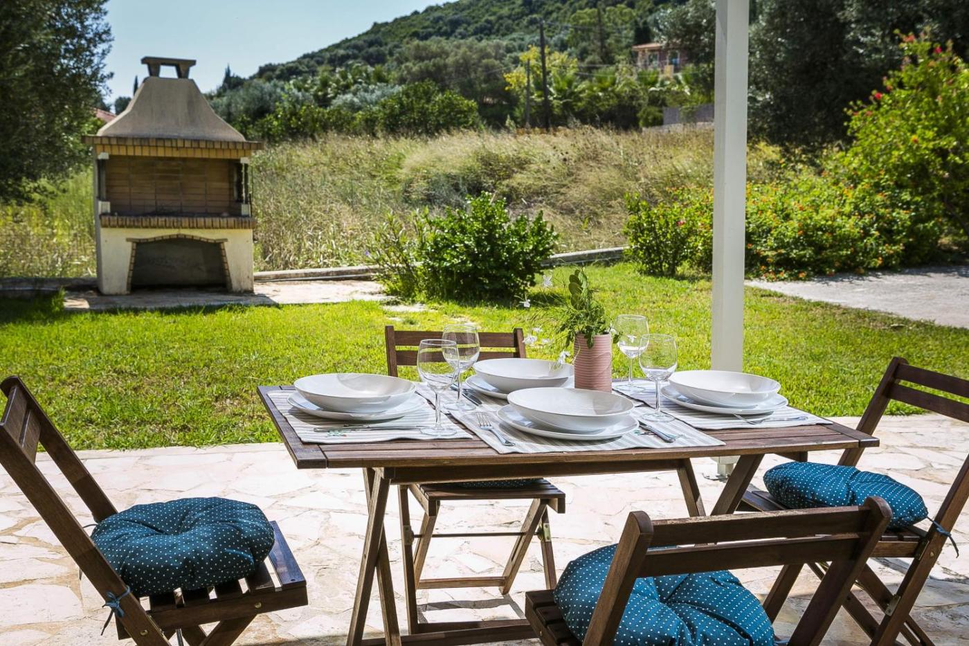 The apartment is fitted with 2 bedrooms, 1 bathroom, bed linen, towels, a flat-screen TV with satellite channels, a fully equipped kitchen, and a terrace with mountain views. Guests can enjoy a meal on an outdoor dining area while overlooking the garden views.