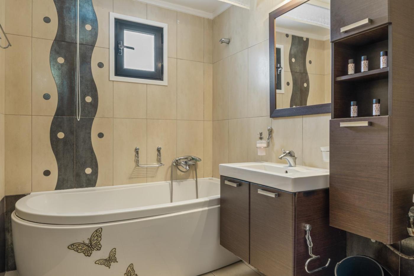 Two-Bedroom Deluxe Apartment with Ocean View. This apartments special feature is the fireplace. The spacious apartment features 2 bedrooms and 2 bathrooms with a bath and free toiletries. The apartments kitchen, which has kitchenware and an oven, is available for cooking and storing food. The apartment provides air conditioning, a private entrance, a coffee machine, a TV, as well as sea views. The unit offers 3 beds.