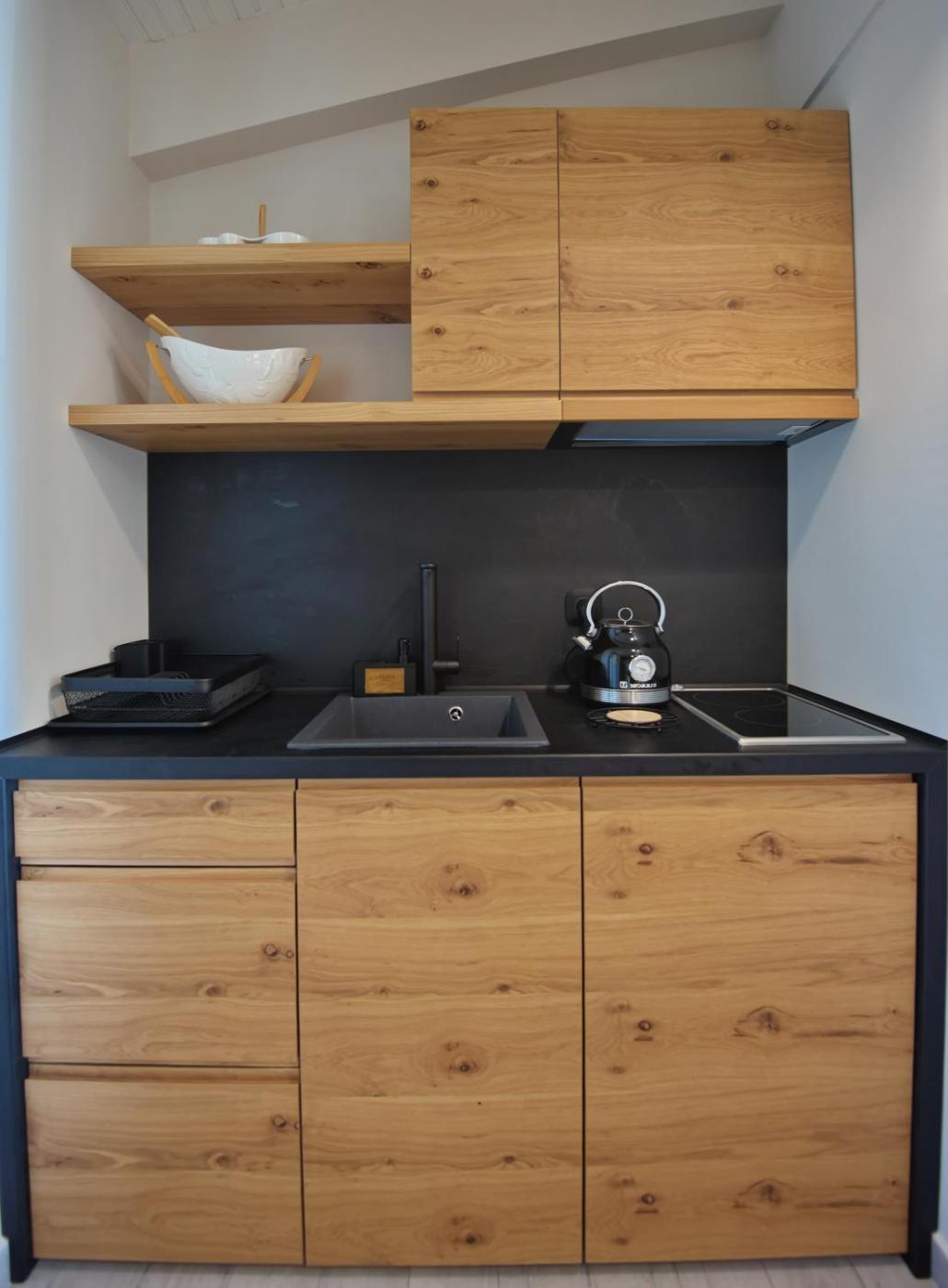 Deluxe Studio. The fully equipped kitchenette features a stovetop, a refrigerator, kitchenware and a tea and coffee maker. This air-conditioned studio includes a flat-screen TV with satellite channels, a private bathroom as well as a balcony with sea views. The unit offers 1 bed. ;