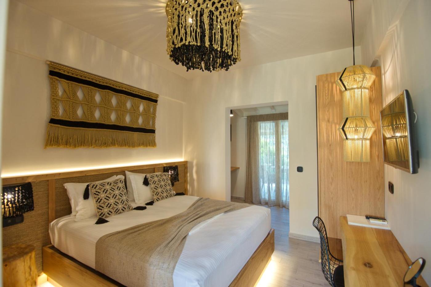 Enjoying a scenic location by the main port of Alonissos, Casa Nina offers a blend of elegant comfort and Mediterranean charm. Each room is styled with a mix of classic and modern elements, featuring warm neutral tones, floral patterns, and soft lighting. Tasteful decor, including natural textures and sea-inspired touches, creates a relaxing atmosphere that reflects the essence of the Mediterranean. With a combination of traditional and contemporary furnishings, guests can enjoy a stylish and comfortable retreat.