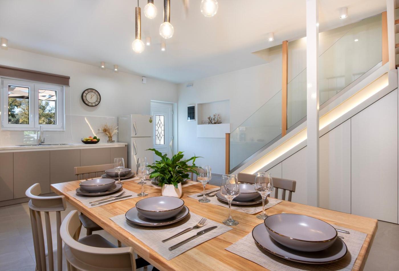Two-Bedroom House. This holiday homes standout feature is the hot tub. Boasting a private entrance, this air-conditioned holiday home includes 1 living room, 2 separate bedrooms and 2 bathrooms with a walk-in shower and a hairdryer. Guests will find a stovetop, a refrigerator, kitchenware and an oven in the well-equipped kitchen. The holiday home also features a barbecue. The spacious holiday home offers a washing machine, soundproof walls, a tea and coffee maker as well as a terrace with garden views. The unit has 4 beds.